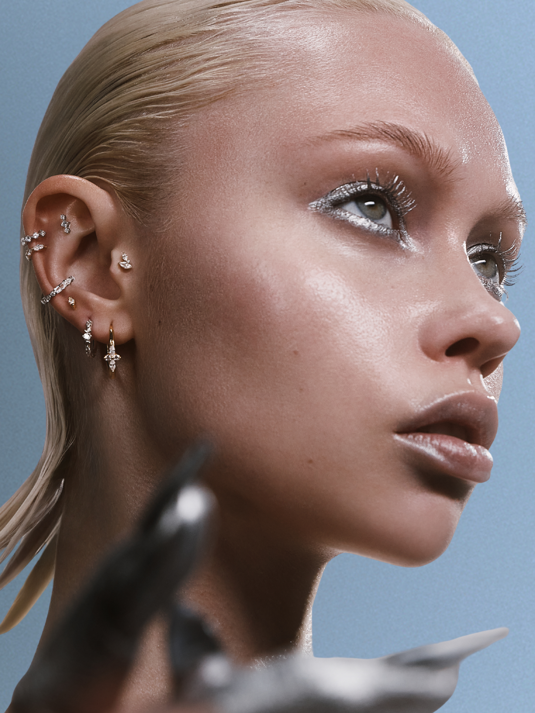 Une gamme réversible de piercings en titane, imaginée et conçue par nos soins, avec un système de fermeture simplifié pour changer vos bijoux facilement, où que vous soyez.