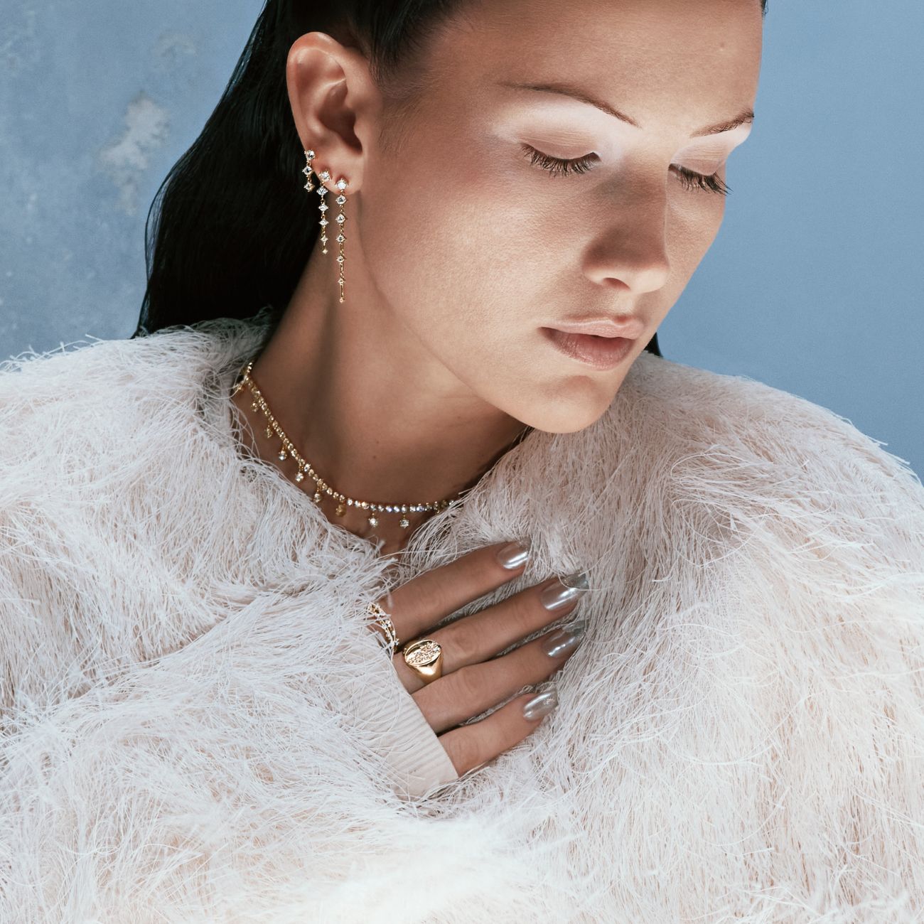 Dans cette collection, j’ai voulu capturer cette dualité : la douceur et la rigueur, le calme et le tranchant, le silence et l’éclat. Snow cristallise tout ce que j’aime dans Nébuleuse : des pièces contemporaines, sculptées par la lumière, pensées comme des talismans glacés. Des bijoux qui semblent flotter, presque en apesanteur, mais qui racontent quelque chose de profondément ancré : la force tranquille de l’hiver qui arrive, sa pureté, sa précision.