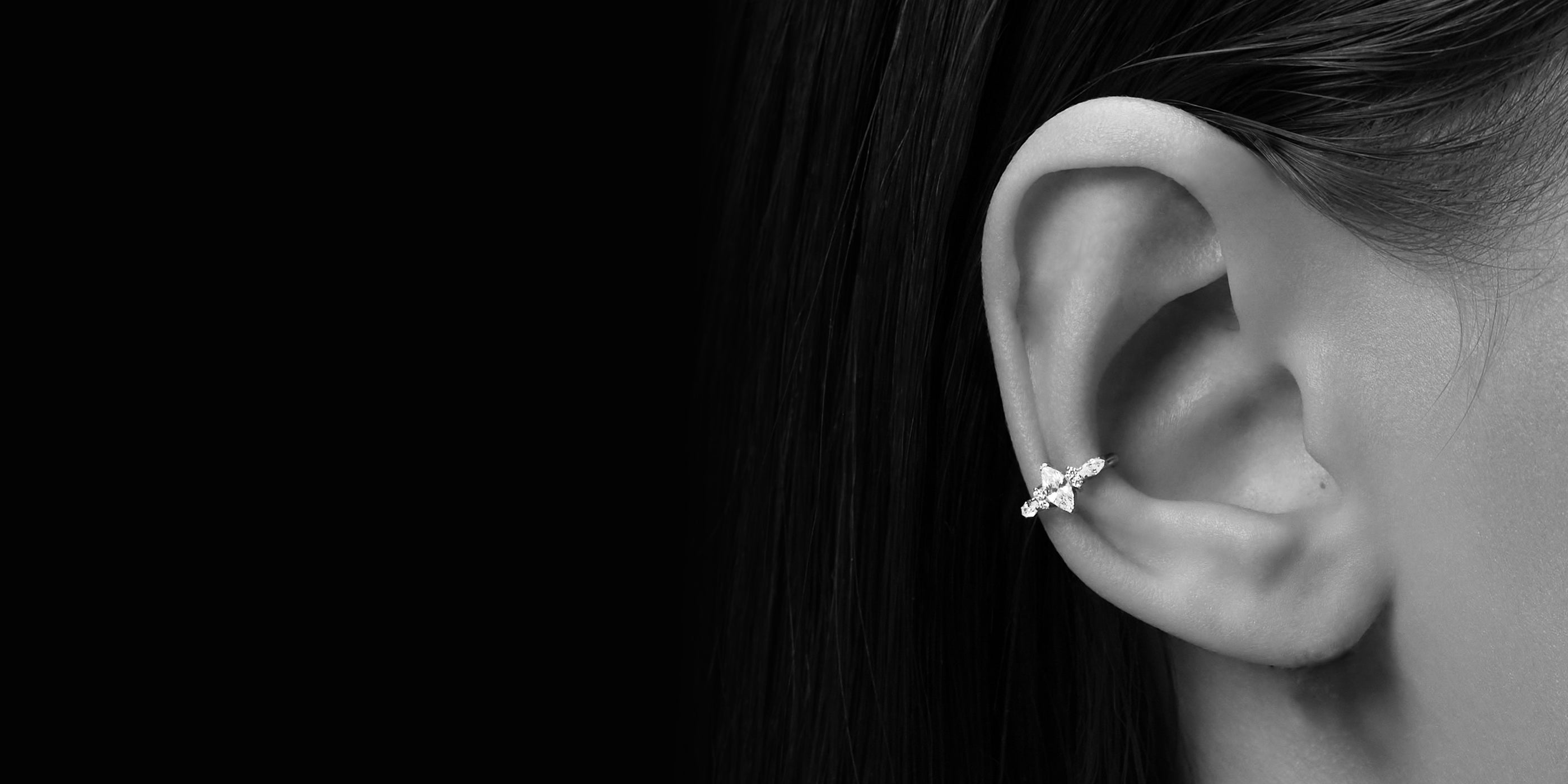 The conch piercing sits perfectly in the hollow part of the ear, near the ear canal. Elevate your style with our individually sold pieces, including clickers, bars, and studs carefully designed so you can personalize your ear stack.
