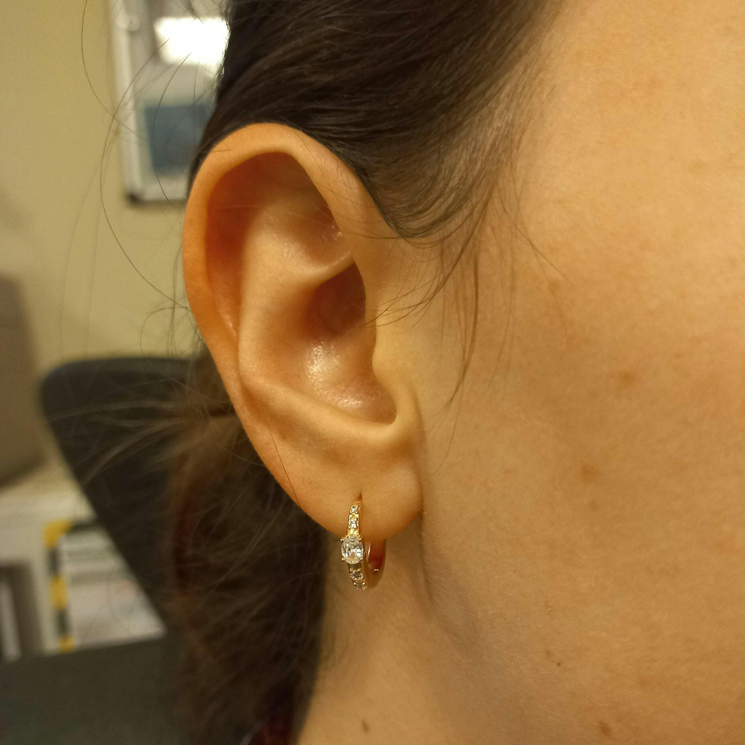 Our stud earrings and hoops are specifically designed for the earlobe and have a 1mm post thickness.