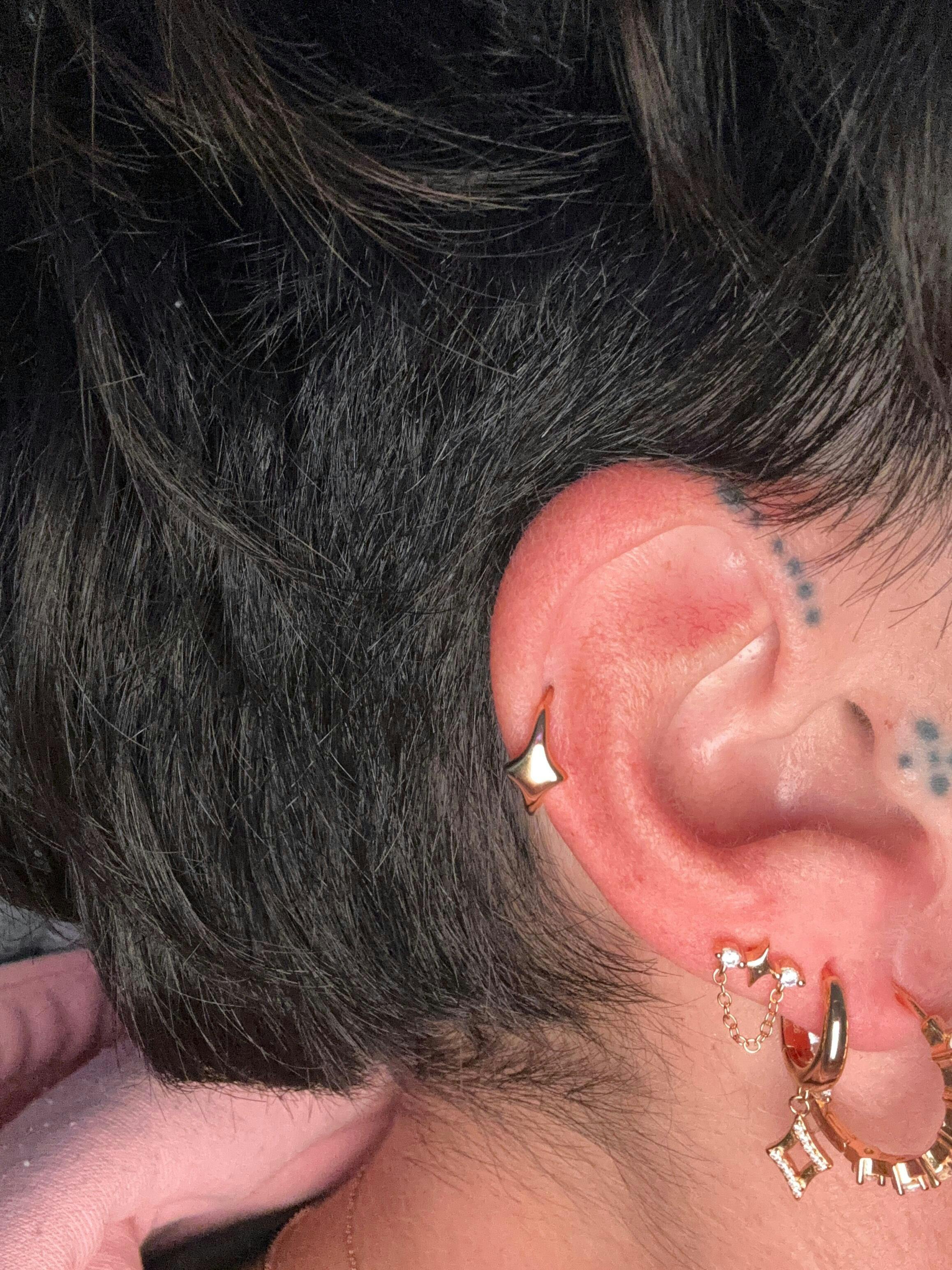 Our clickers and stud piercings, on the other hand, are made for the cartilage and have a slightly thicker 1.2mm post. This means the post is a bit larger than standard earrings.