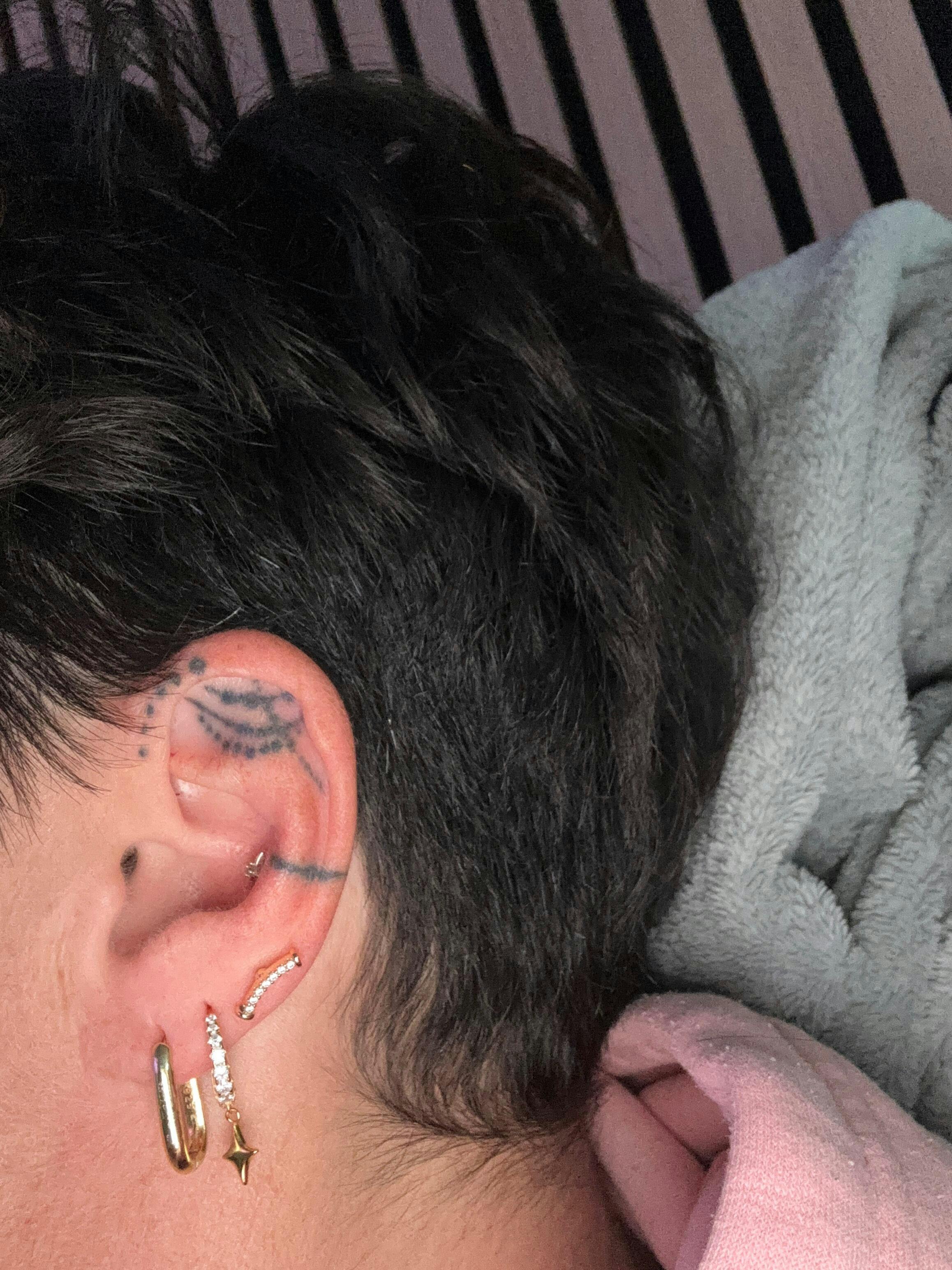Our stud earrings and hoops are specifically designed for the earlobe and have a 1mm post thickness.