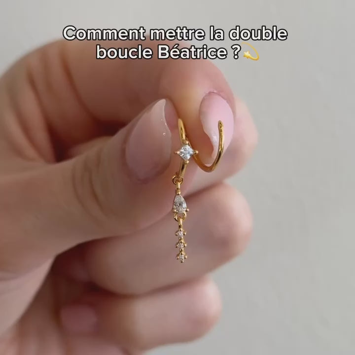Rencontrez Béatrice : une double boucle qui donne l'illusion d'un deuxième piercing au lobe. C'est l'un des plus beaux bluffs jamais connus...