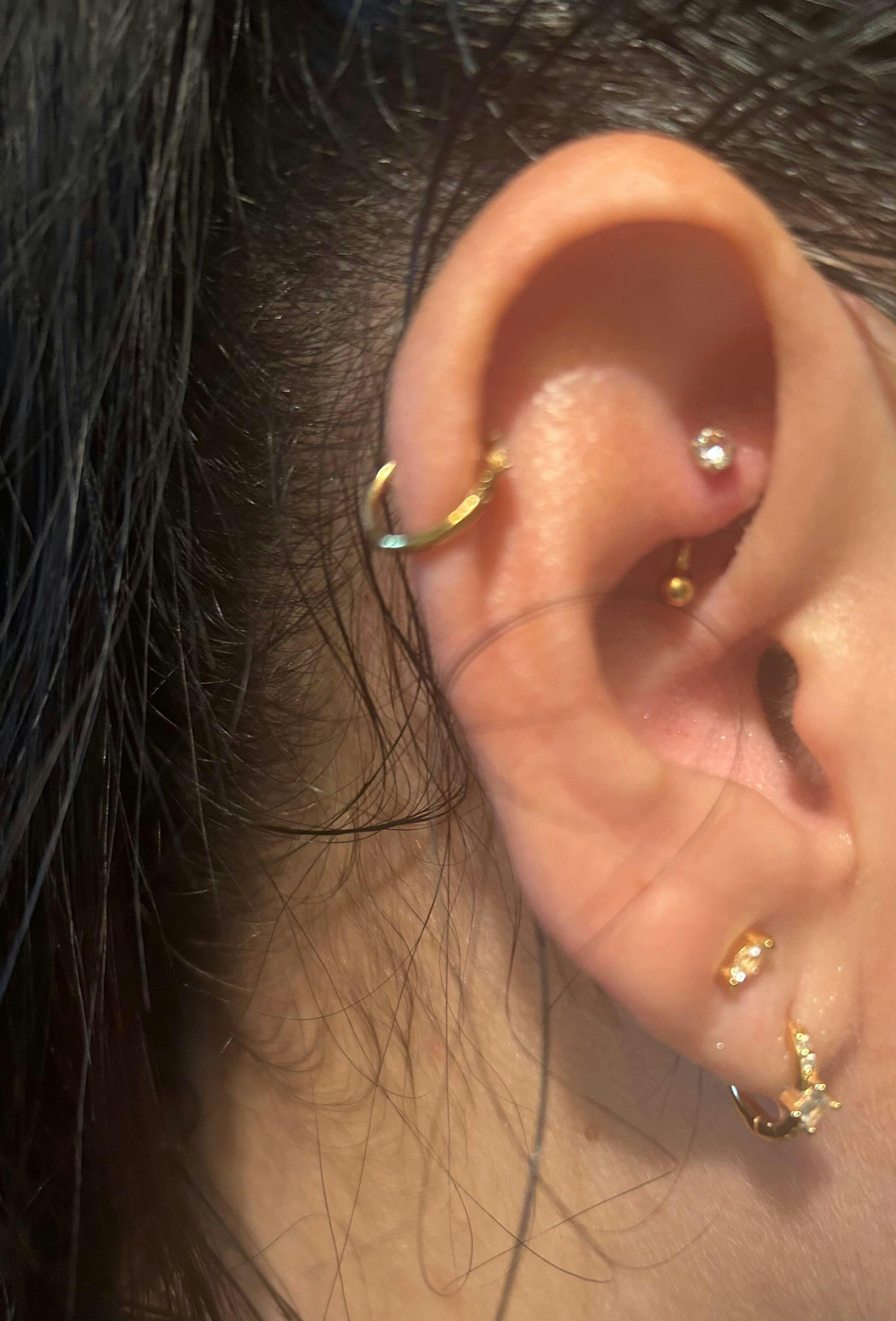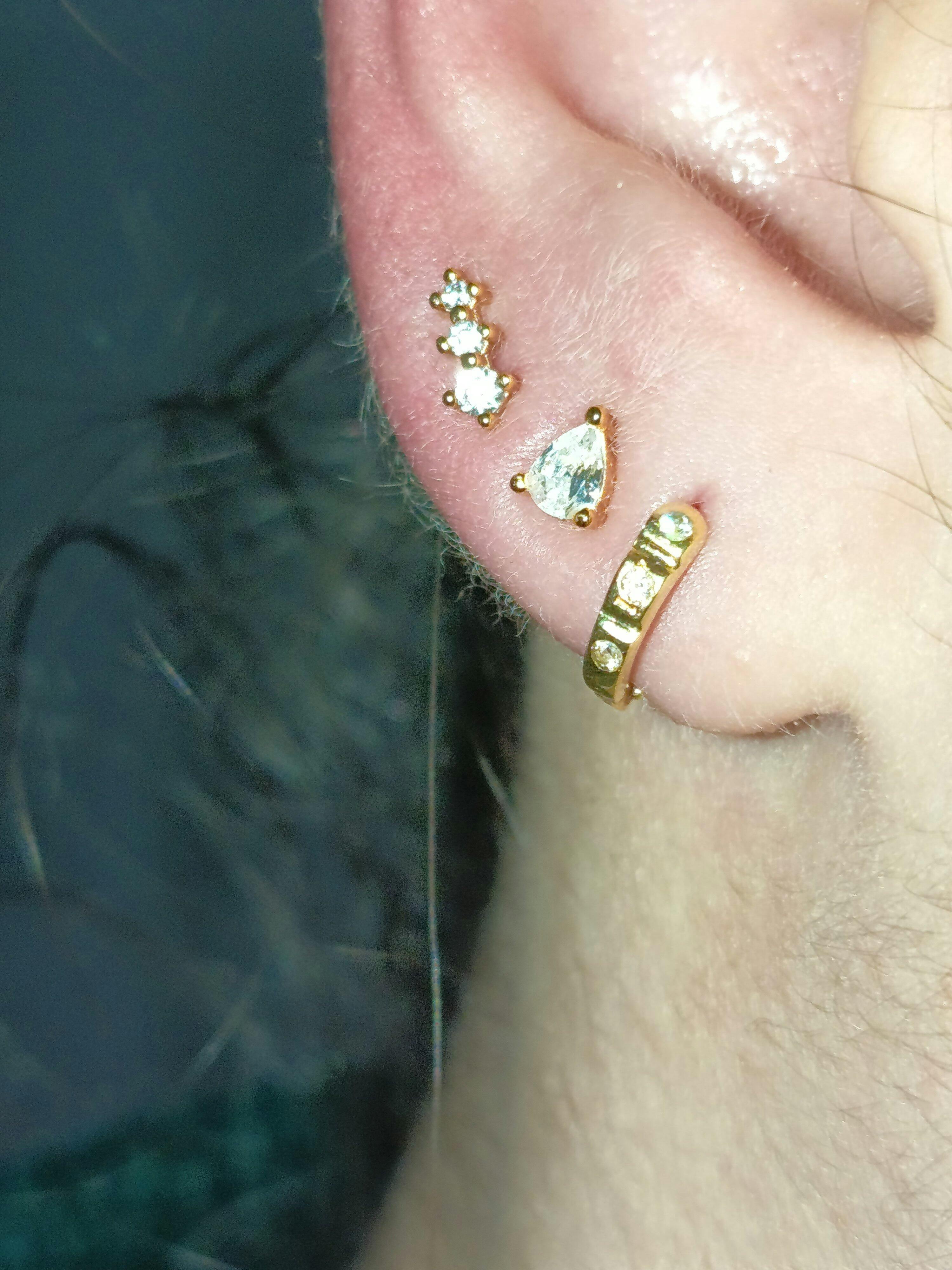 En revanche, nos piercings ont été conçus pour se placer sur le cartilage de votre oreille avec une épaisseur de tige de 1,2mm. Leur tige est donc légèrement plus grande que celle des boucles d'oreilles.