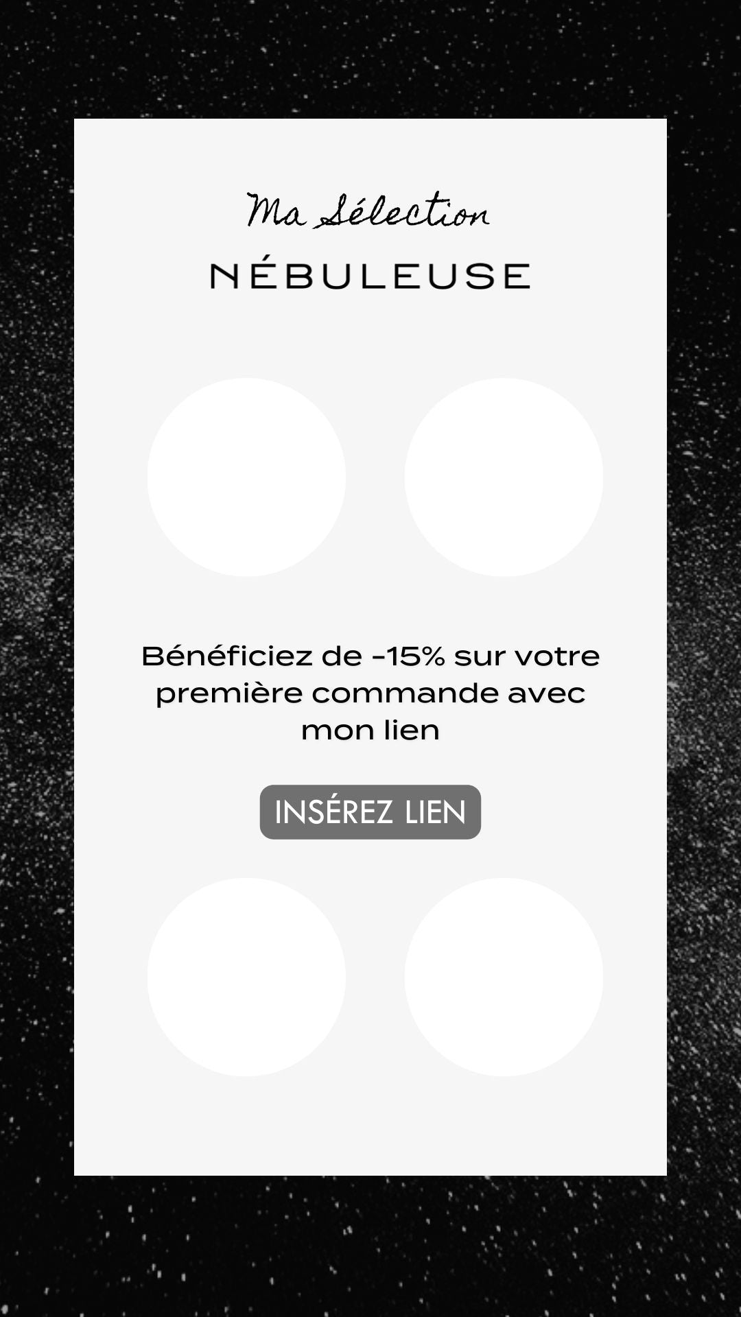 Créez vos visuels ou complétez les templates ci-dessous avec vos photos, votre lien personnalisé, puis publiez-les sur vos réseaux sociaux.
