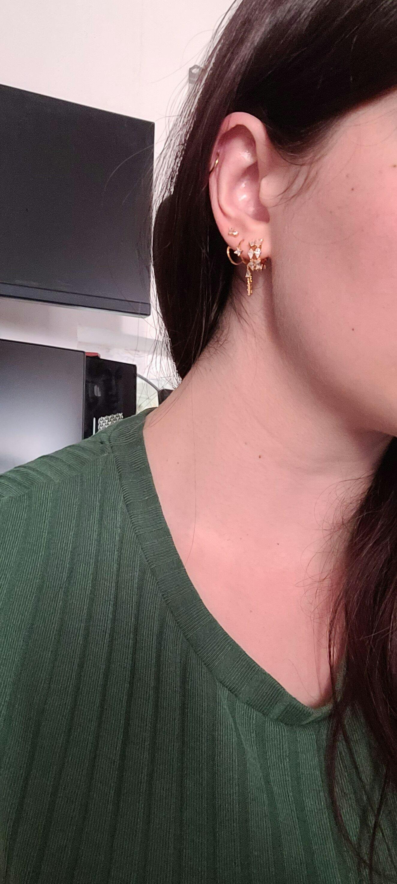 En revanche, nos piercings ont été conçus pour se placer sur le cartilage de votre oreille avec une épaisseur de tige de 1,2mm. Leur tige est donc légèrement plus grande que celle des boucles d'oreilles.