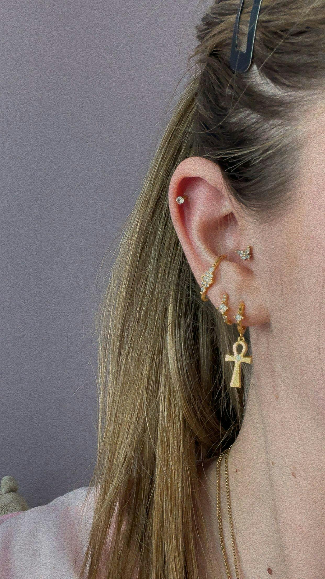 En revanche, nos piercings ont été conçus pour se placer sur le cartilage de votre oreille avec une épaisseur de tige de 1,2mm. Leur tige est donc légèrement plus grande que celle des boucles d'oreilles.