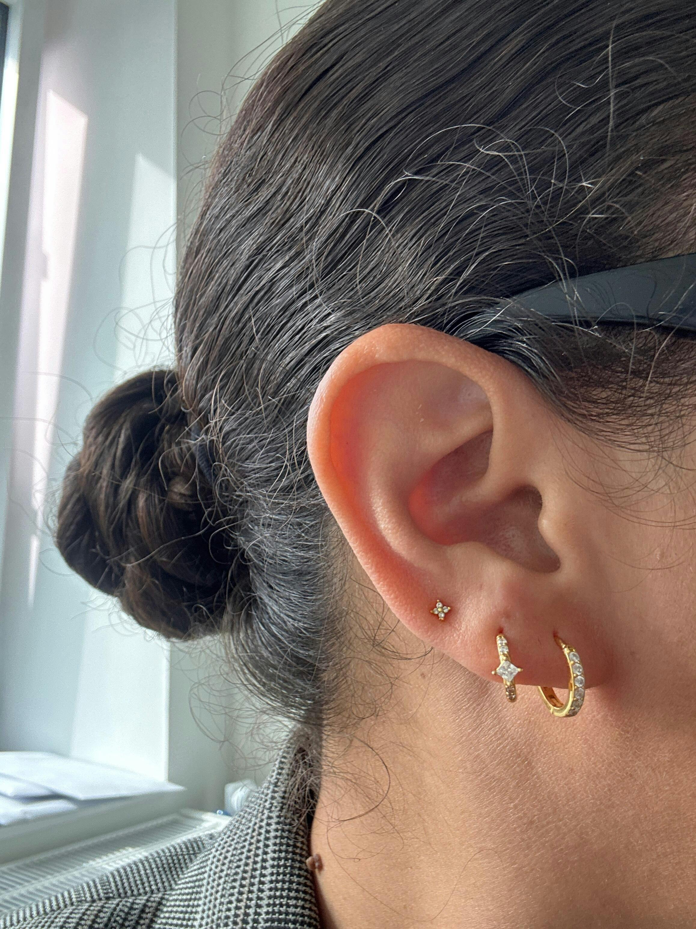 En revanche, nos piercings ont été conçus pour se placer sur le cartilage de votre oreille avec une épaisseur de tige de 1,2mm. Leur tige est donc légèrement plus grande que celle des boucles d'oreilles.