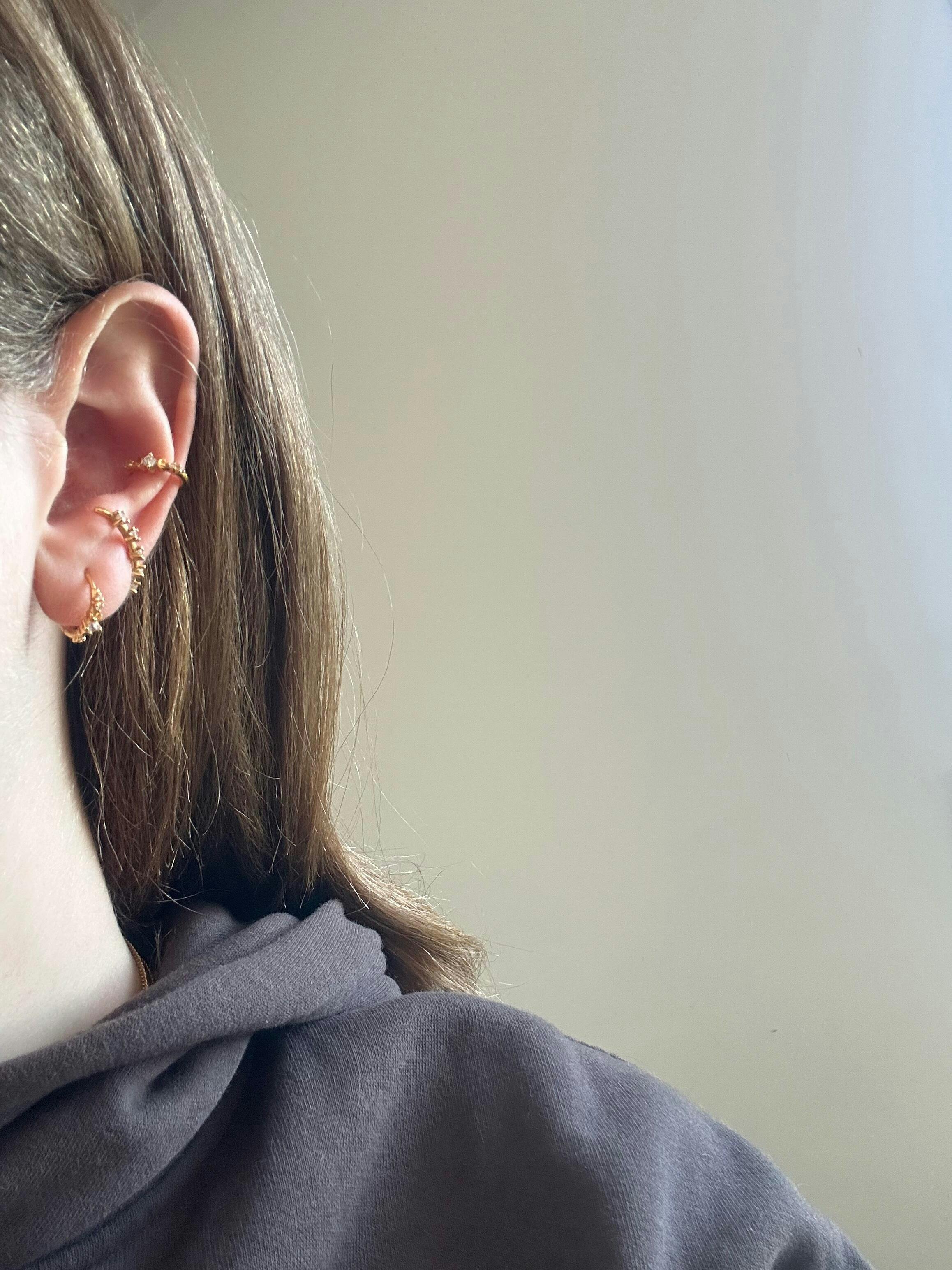 En revanche, nos piercings ont été conçus pour se placer sur le cartilage de votre oreille avec une épaisseur de tige de 1,2mm. Leur tige est donc légèrement plus grande que celle des boucles d'oreilles.