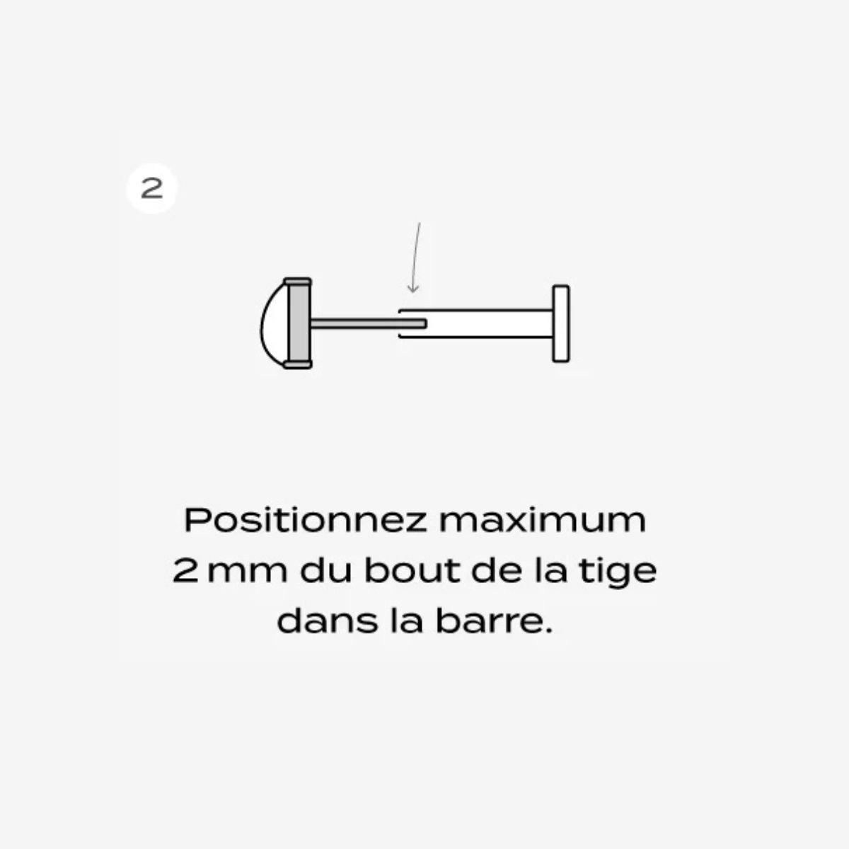 Plus besoin de visser votre bijou. Il vous suffit de glisser le bijou dans la barre et d’appuyer pour qu'il reste bloqué, éliminant ainsi le besoin de manipuler de petites pièces délicates. Cette simplicité d’utilisation permet de changer facilement tous vos piercings seul·e, en toute confiance.