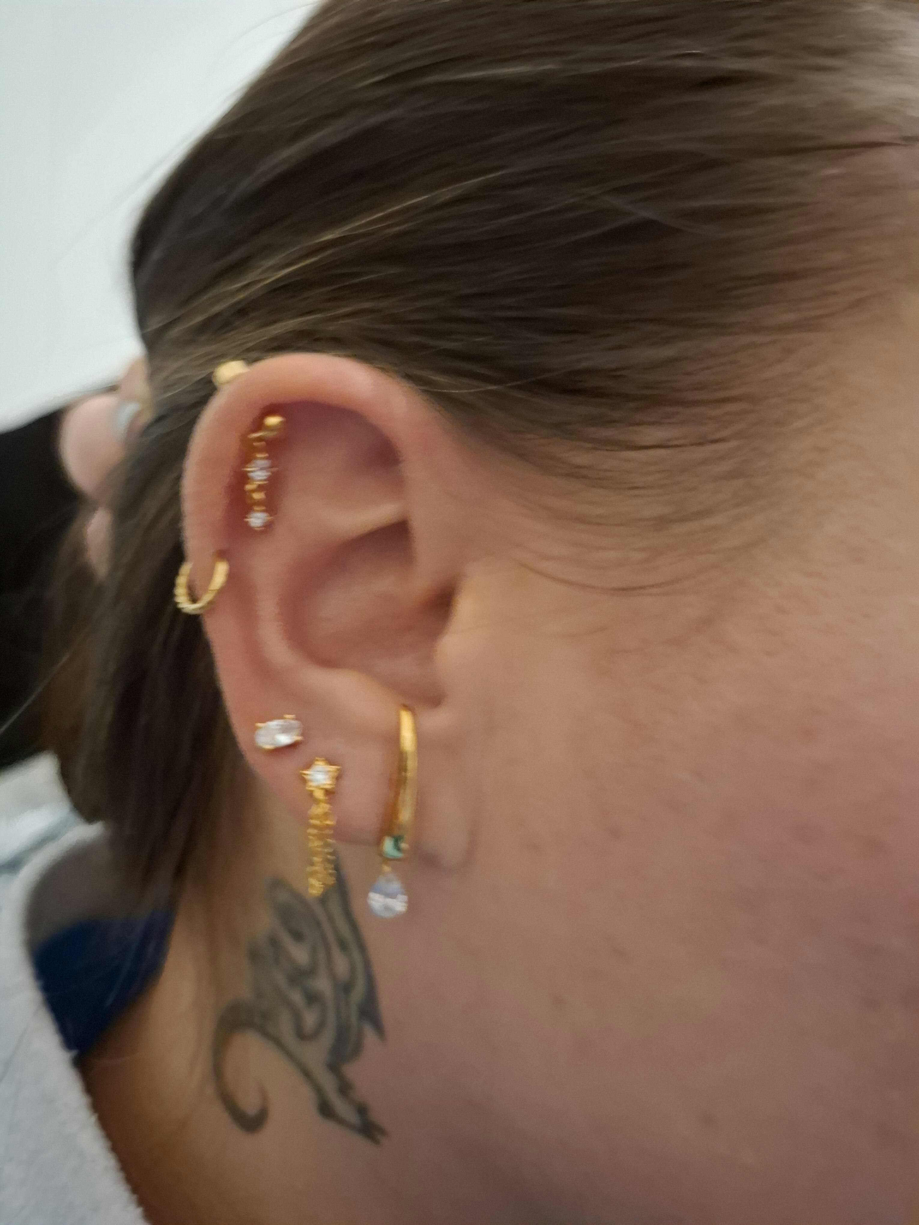 En revanche, nos piercings ont été conçus pour se placer sur le cartilage de votre oreille avec une épaisseur de tige de 1,2mm. Leur tige est donc légèrement plus grande que celle des boucles d'oreilles.