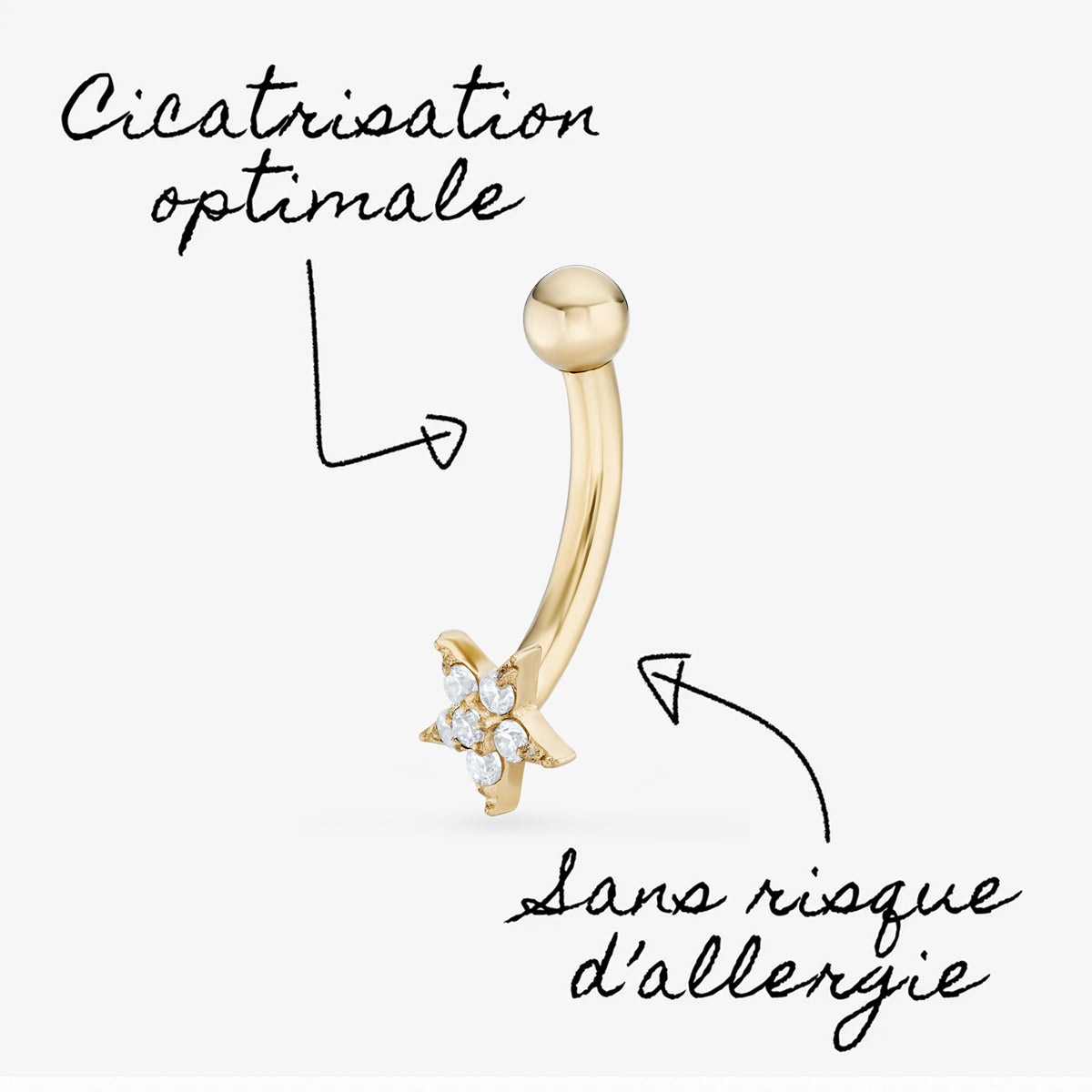 L'acte de piercing inclut la pose d'un bijou classique en titane.