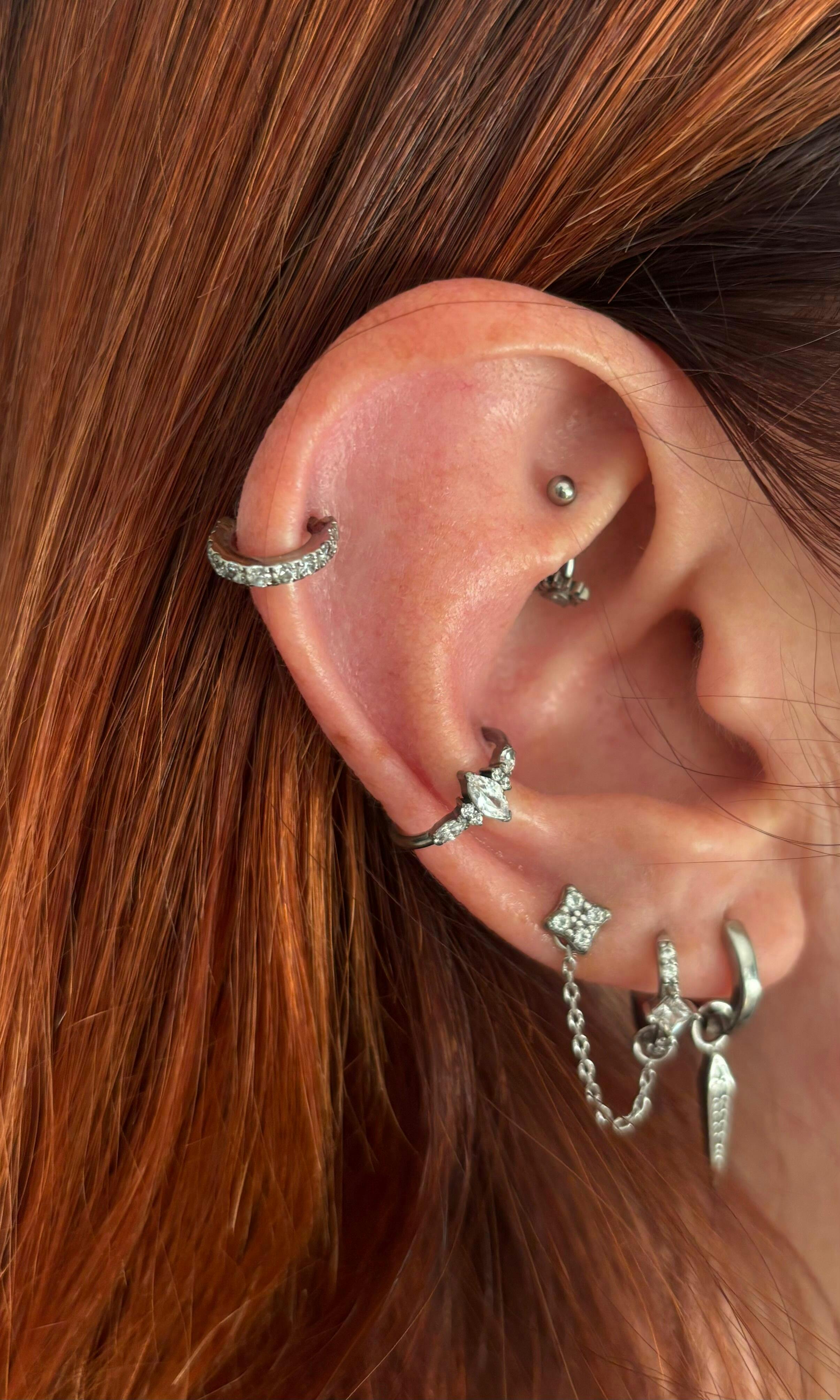 En revanche, nos piercings ont été conçus pour se placer sur le cartilage de votre oreille avec une épaisseur de tige de 1,2mm. Leur tige est donc légèrement plus grande que celle des boucles d'oreilles.